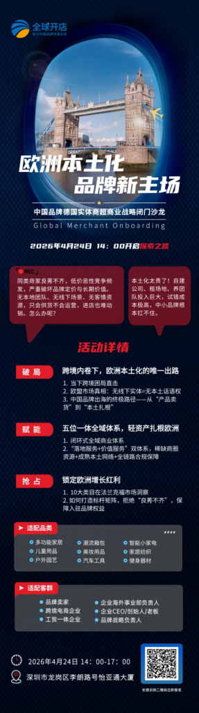 4月24日(本周五),我们将在深圳办一场招商闭门沙龙,只邀请真正想在欧洲做品牌、做实体、做长线的老板。